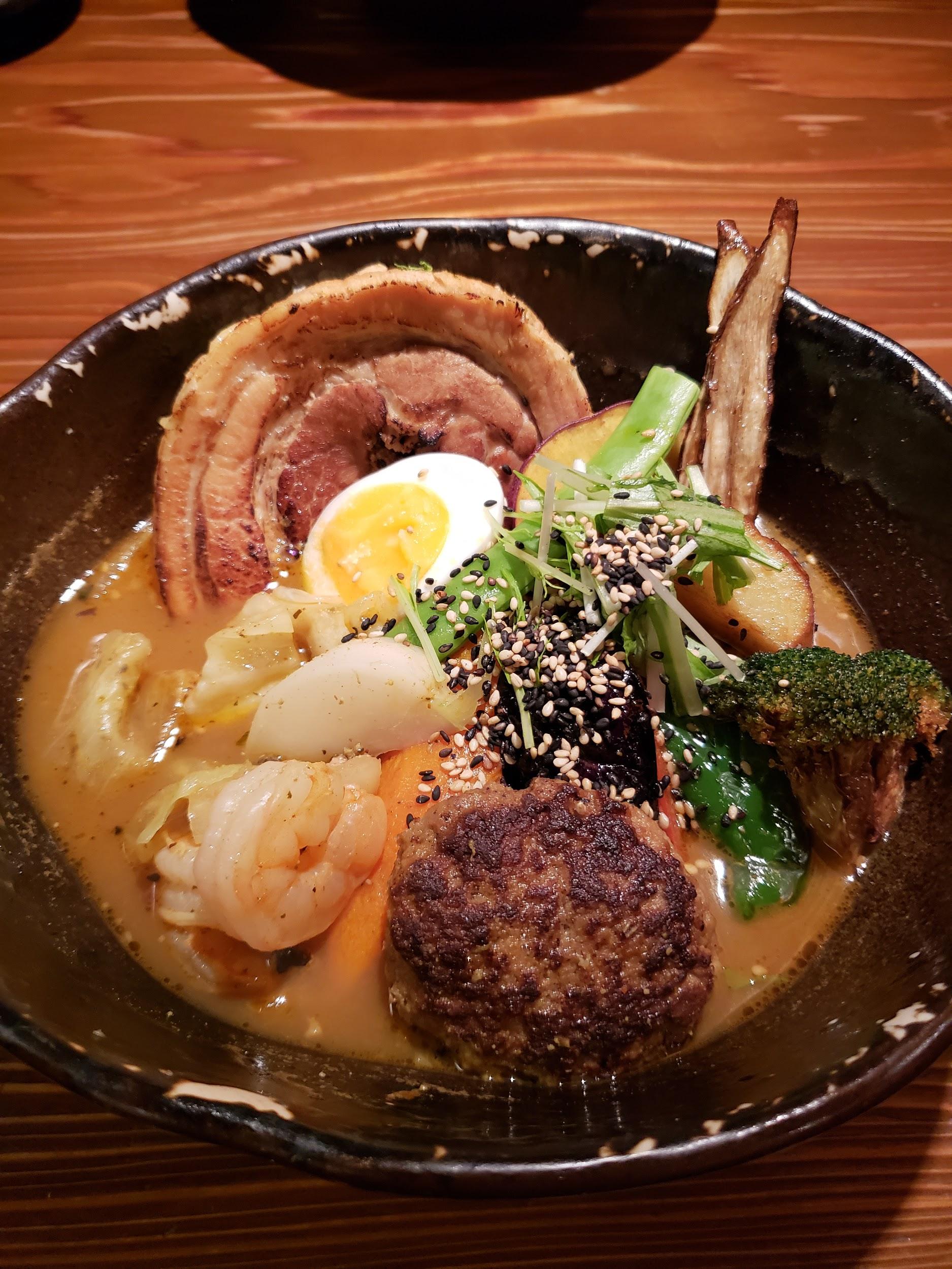 心满意足的一个夜晚,汤咖喱Rojiura已经在霓虹中无争议地升任咖喱类第一名餐馆。