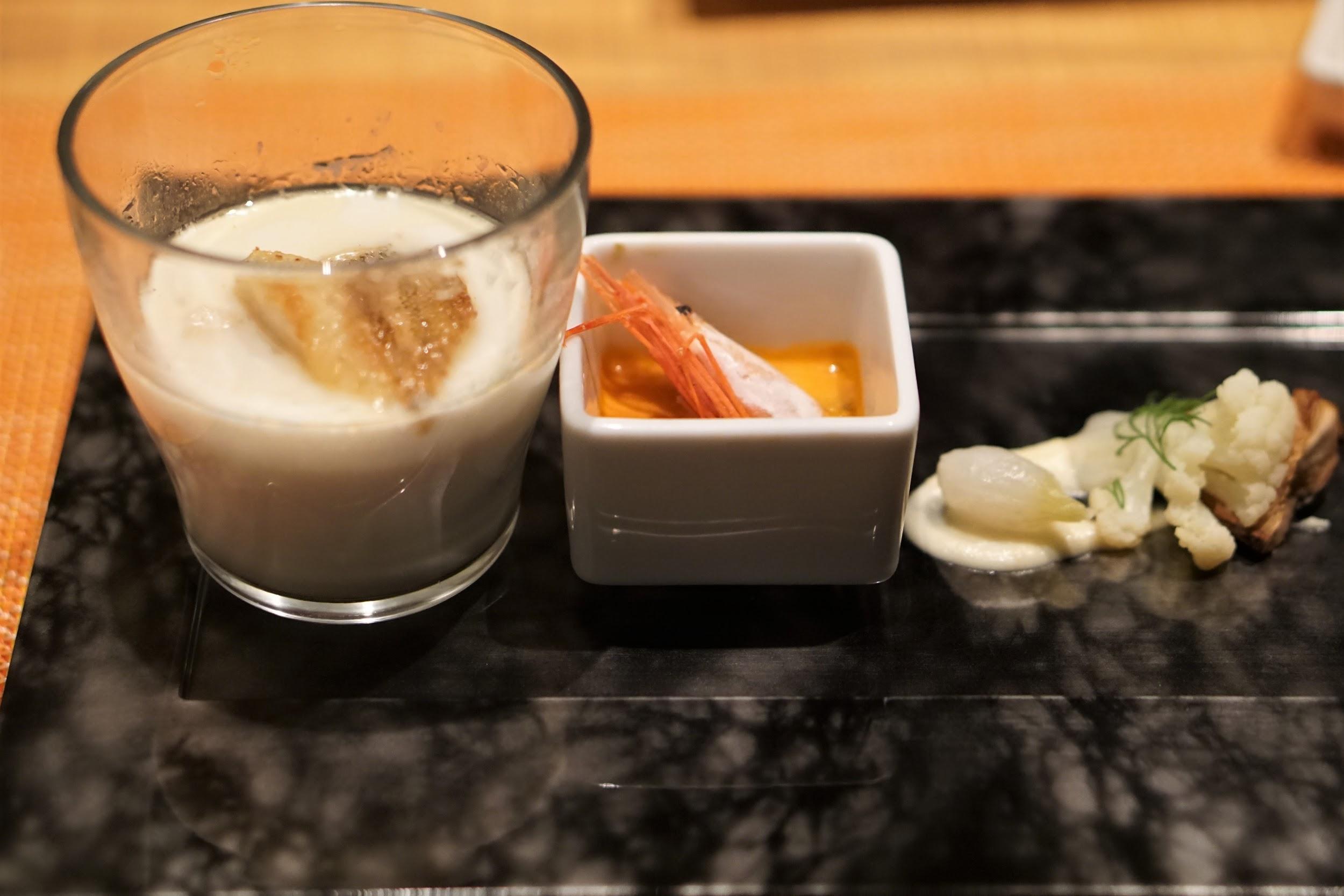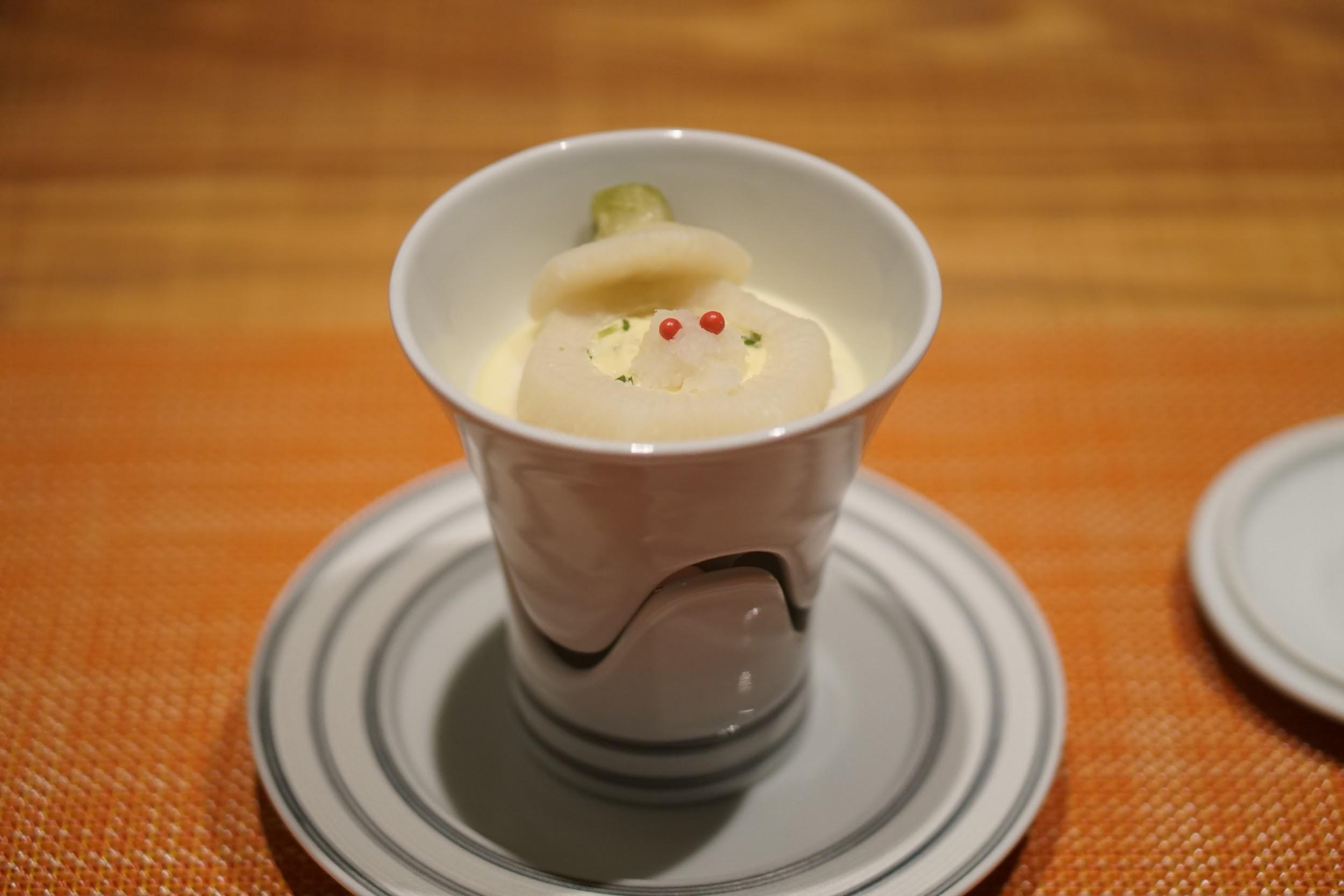 登别地狱谷的望楼旅馆,餐食在当地应算不错,味道虽然比不上星级怀石料理,但摆盘漂亮,又使用北海道吊打其他地方的美味蔬菜,整体感觉还是非常不错的,如图1中的小萝卜中间是蒸蛋,萝卜如同水果的一样汁水丰富而甘甜,融合着蒸鸡蛋的鲜美一起吃下去,非常回味无穷。图2是五种开胃饮料,包括北海道牛奶、番茄汁、苹果汁、酸奶、北海道野莓汁,摆在一起很有食欲。图5是火山岩石烤北海道和牛,牛肉于我而言跟海胆一样,只有超一流的厨师才能让我觉得好吃,因此也没有太多的感觉。看起来平平无奇的图4,烤过的鳗鱼与豆浆做成的汤杯,如此新颖的菜品,味道也超群地好,豆浆吸收了烤鳗鱼留出的鲜油,既保存了鲜度,又平衡了口感,端起杯子喝完了还完全意犹未尽。