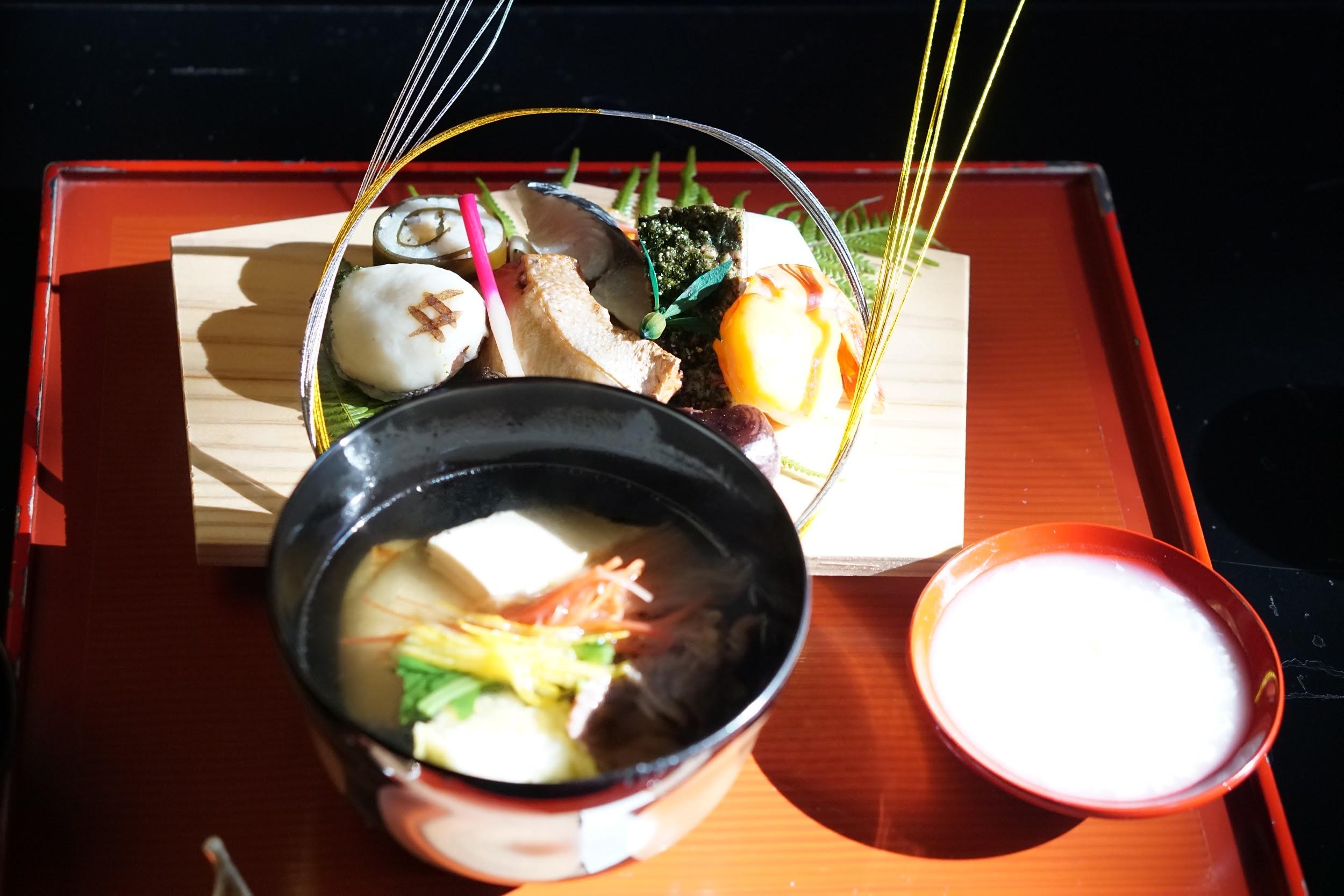 一月一日的晚上,我们到了温泉乡涩温泉,老旅馆金具屋的和食也非常有特色,最需要记录下来的是图1的“螃蟹馒头”,不曾在别处吃到过类似的食物,是蟹肉鱼肉捏成的小丸,煮在金色的浓汤内,肉极鲜美。拌着山药泥的荞麦面带着新年的气息,据说比山药饭更加清香,但不喜欢粘稠感的我还是没有吃。