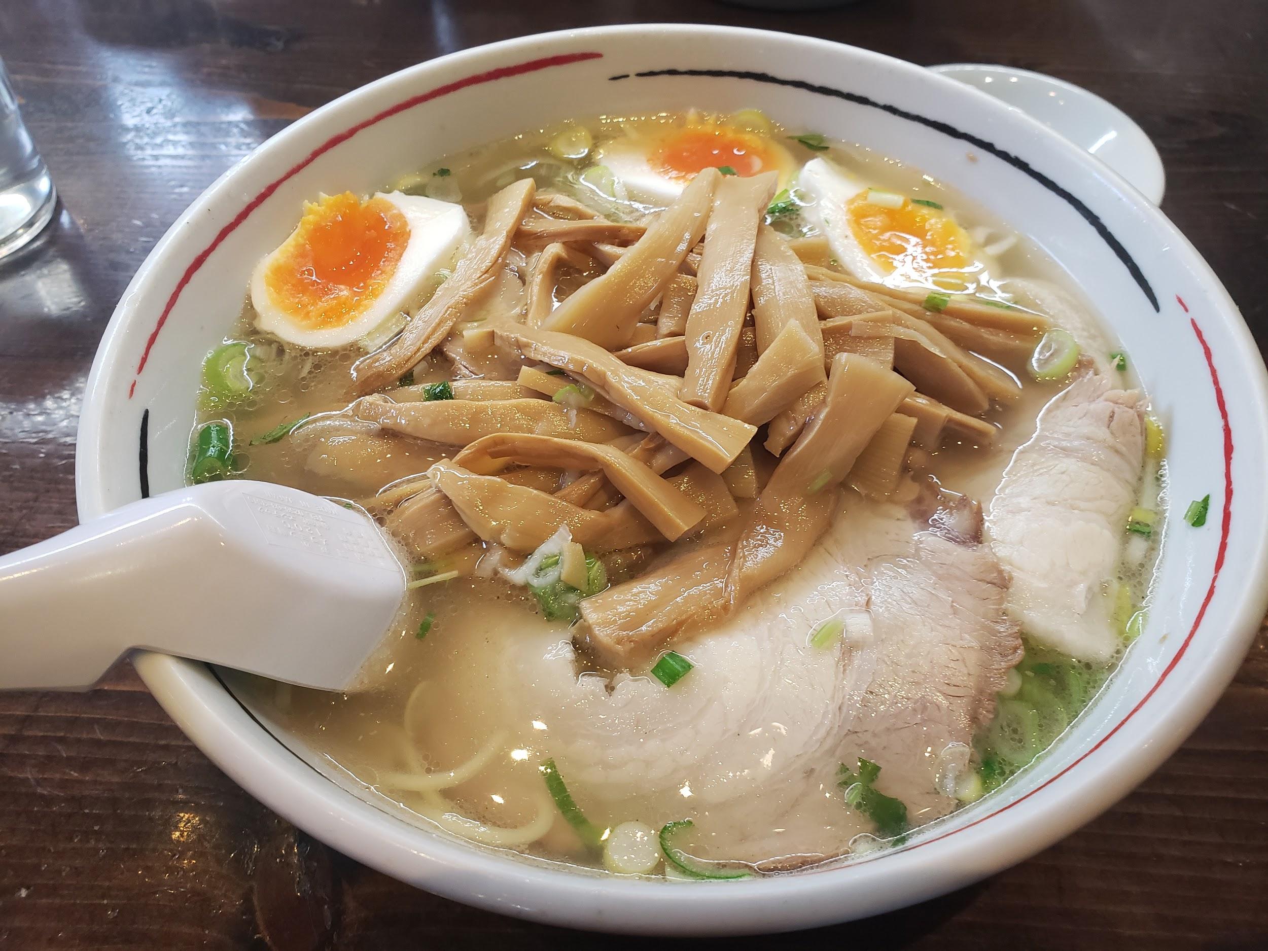 北海道的拉面有好几个派系:以札幌为大本营的味增系,以旭川为大本营的酱油系,和函馆为大本营的盐味系。所以来到了函馆,不能不试一下他们的盐味系拉面。AJISAI作为函馆最受好评的拉面店,又在我们的酒店旁边,自然不会错过。这家店进门就是自动点餐机,首页拉面只有一款,就是招牌盐味拉面,不需要考虑。每个人面前都摆着一个碗在唆唆唆。要说起来,味增拉面,有味增的味道,酱油拉面,有酱油的味道,但哪家面不会有盐的味道呢?盐味拉面究竟有何特色?就我的体验来说,肉多量足,但重点是汤味鲜美,我几乎全部喝掉了。我想,盐味拉面在抛除了那些其他的调味元素以后,把重心放在如何让简单的汤底更鲜美,得以把拉面做得更纯粹了!