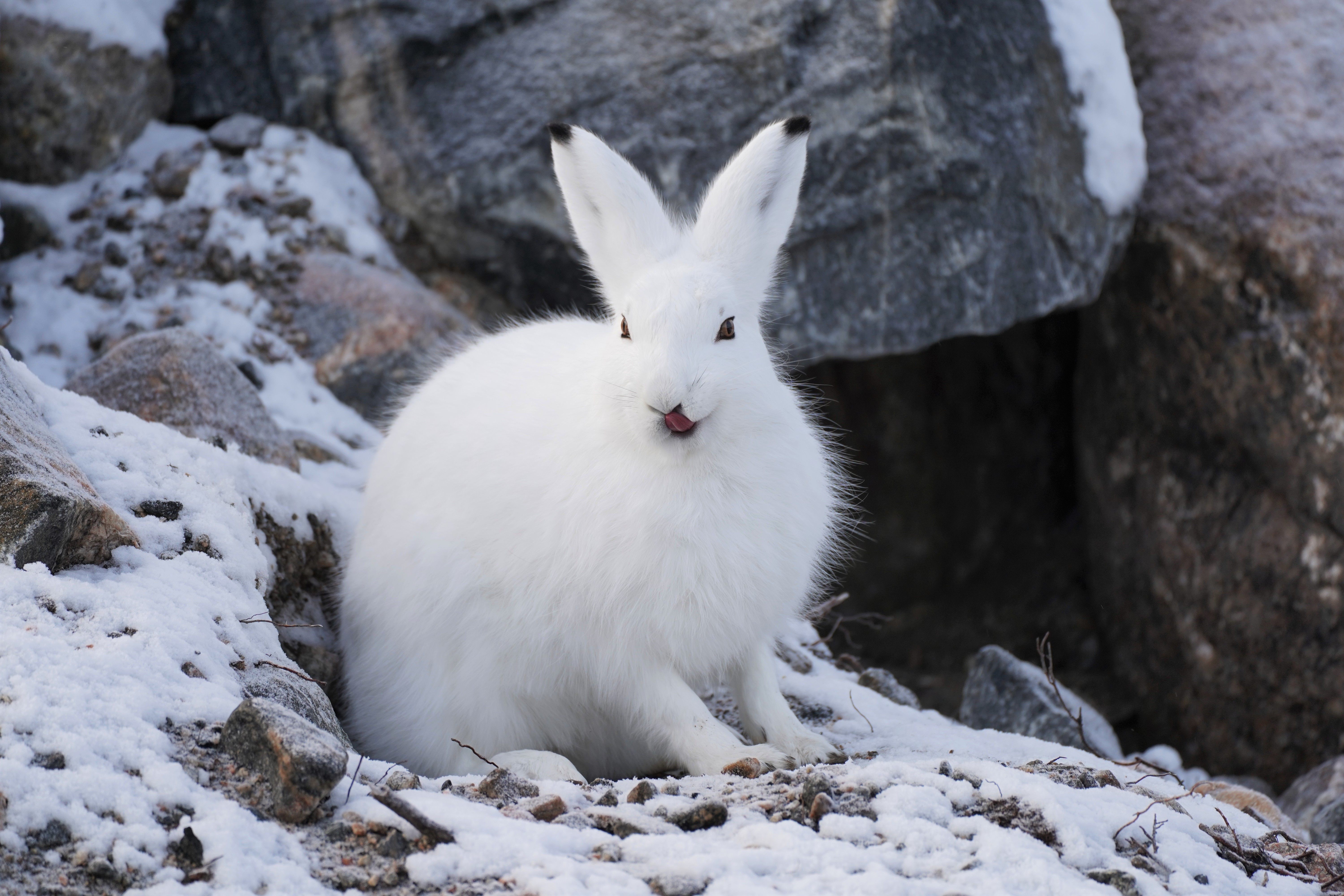 苔原尽头是盖雪的海滩,林立的岩石绣着金色地衣,金色滨麦连成波浪。一只红色的小狐狸探出头来,三五步轻巧地跳上石滩,惊起一群黄色脸颊的雀鸟。同行的英国大叔拿望远镜看了一眼说,snow bunting (雪鹀)。(后来我对他一秒识鸟的超能力表示钦佩,他用特别英国的腔调笑答oh a wasted life~)苔原上更常见的是柳雷鸟,雪白的羽毛一直覆盖到脚爪,仿佛穿着雪靴。北极兔也穿着雪鞋,宽大的脚掌长毛覆盖,浑身雪白,连鼻尖也不例外,只有一双褐色眼眸和长耳朵尖上一抹黑色——好像雪精灵唤醒了一块浑圆的石头而来。北极狐则像雪本身的化身,我们只远远望见一只,洁白的小狐狸拖着蓬松的大尾巴在冰面上轻盈地跳着狐步舞,幻梦般的场景。一身白衣是这些动物的冬装,在夏日,苔原上紫色柳兰绽放,灌木上栖息的是棕色雷鸟,绿草中跑过的是灰色的兔子与狐狸。不同时节的旅客交谈起来,谁能辨明谁在痴人说梦。