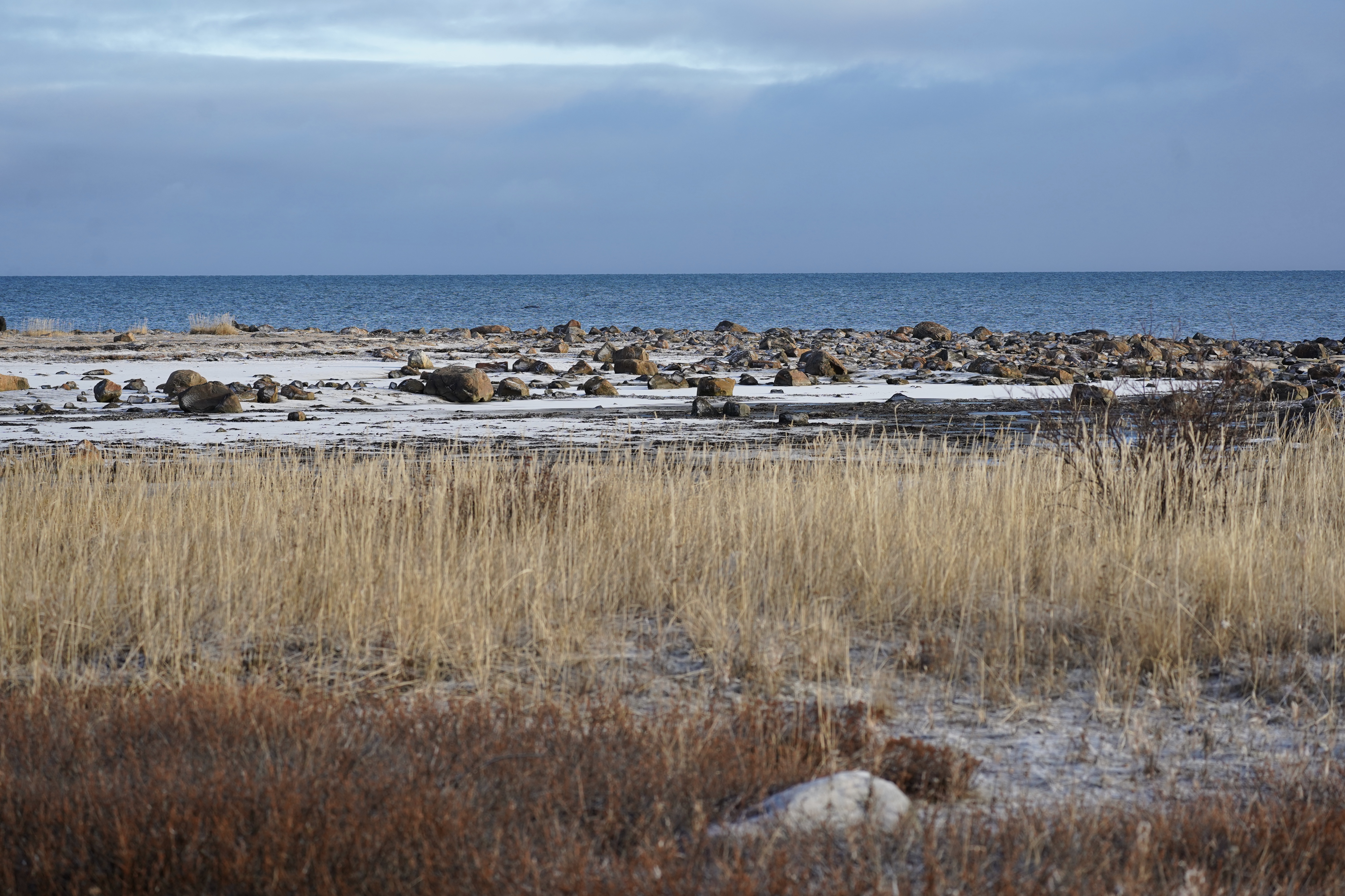 谢谢你们与我们短暂地分享苔原、海湾与梦境。后来我们又幸运地拥有两个晴夜,这梦幻的光却再也没出现。苔原的天空是神的奇想,就像白天徒步时忽而浓雾将我们追赶,忽而阳光将漫天云层驱散,人类无法预测,只知每分每秒都可能被卷入奇迹。离开的早晨,一只熊妈妈与两只小熊从海滩爬上旅馆门前唯一一条土路,远远地跟在我们身后张望。小飞机将我们与梦境剥离,掠过苔原上栖息的白熊、云杉间跑过的麋鹿与海上白鲸的影子,降落在Churchill的小机场。这里属于苔原与北方针叶林的过渡地带taiga,海边大片的荒土与巨石间点缀着细小的云杉,树枝几乎全朝一侧生长——风雪塑造了树的形态。