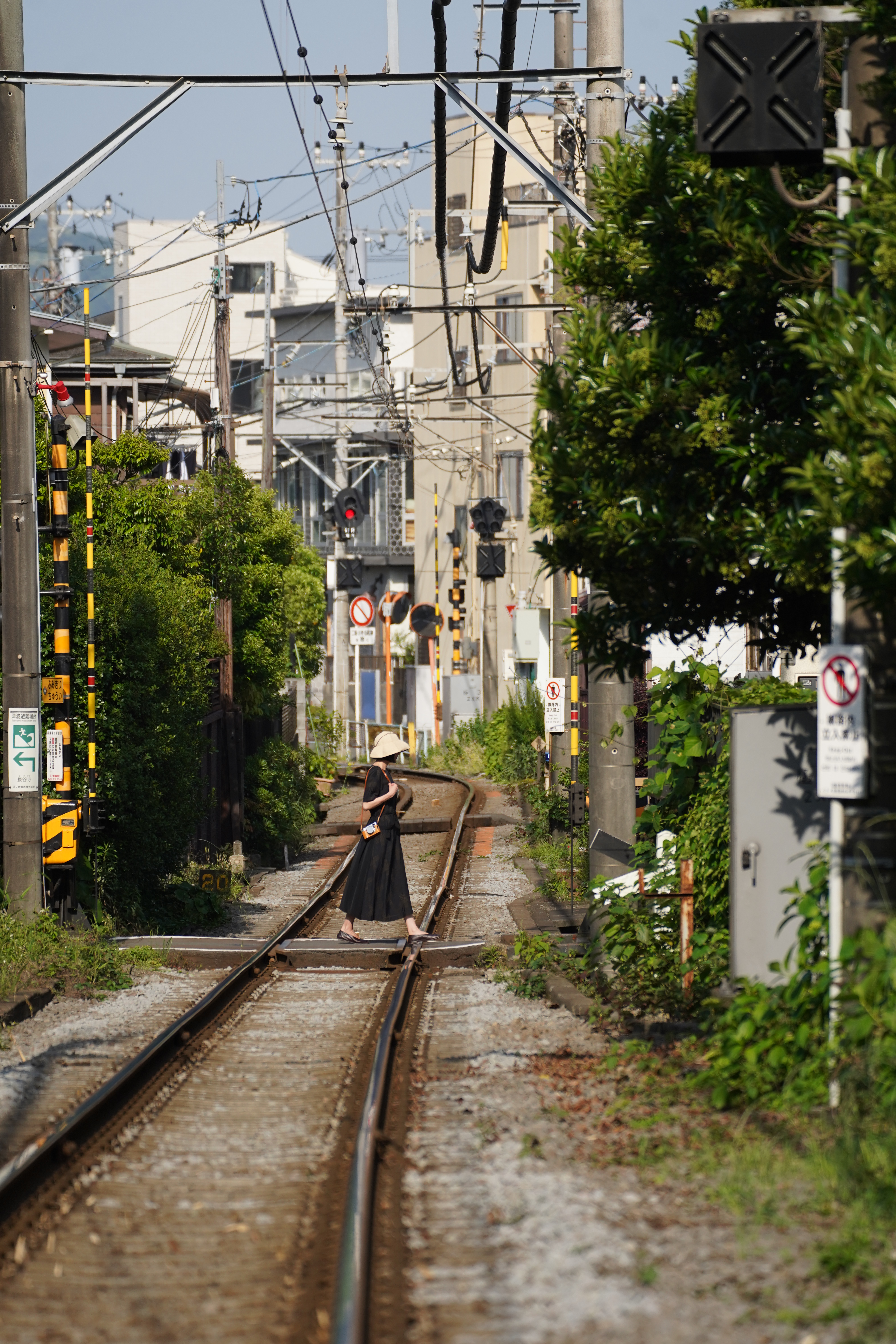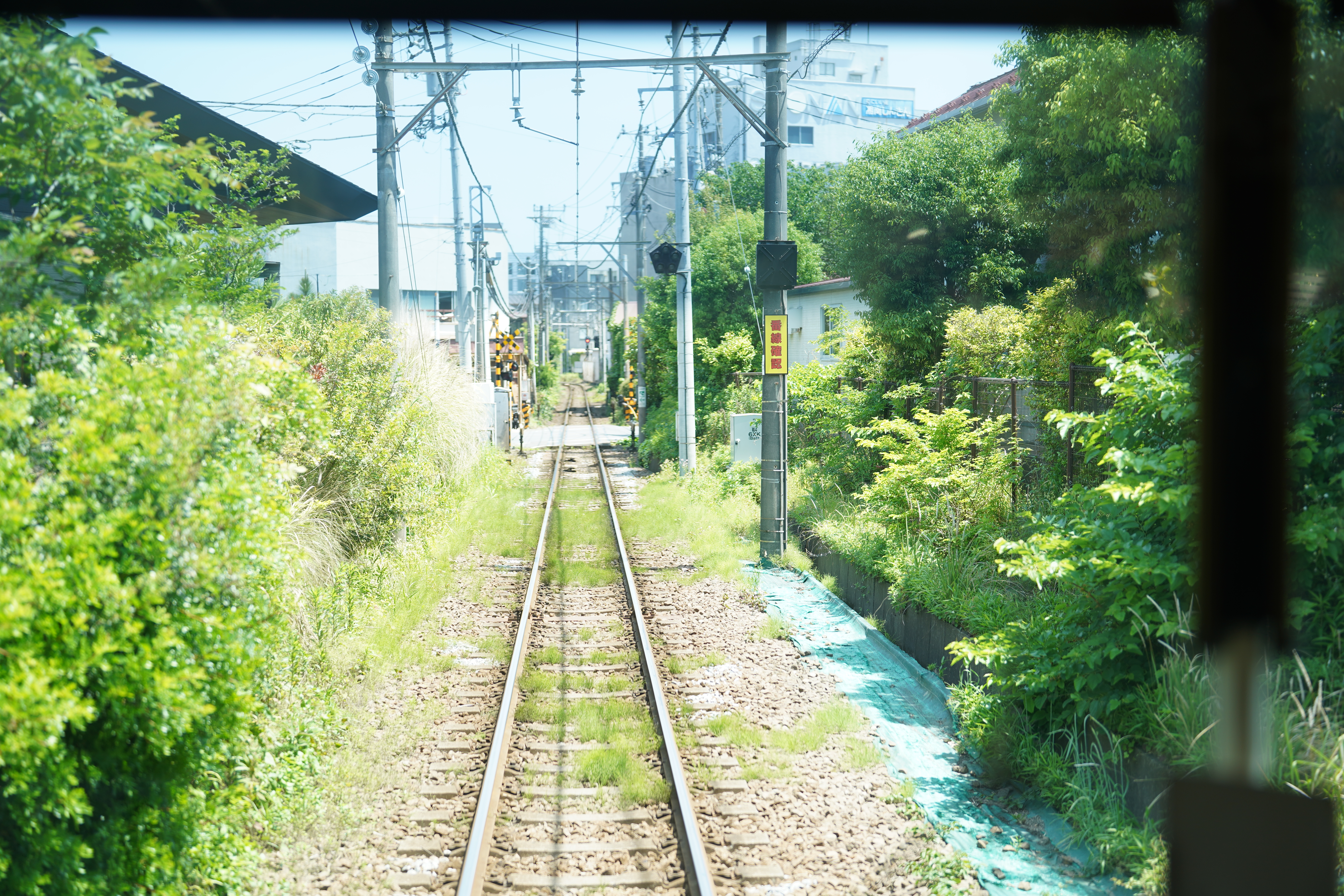 当沙丁鱼一般塞满车厢、身着复制粘贴深色套装的上班族齐齐涌下车,车窗外切割青空的大厦变成开阔阳光中整洁的矮楼,我们便从东京都心驶入了神奈川县境。晨光把车厢照得清透明亮,拘谨的坐姿松懈下来,侧过脸看向窗外。横须贺线铁轨上渐渐生出郁郁葱葱的高草。绿影越攀越高,直至填满银灰色窗框,一幢幢民居只剩影影绰绰。