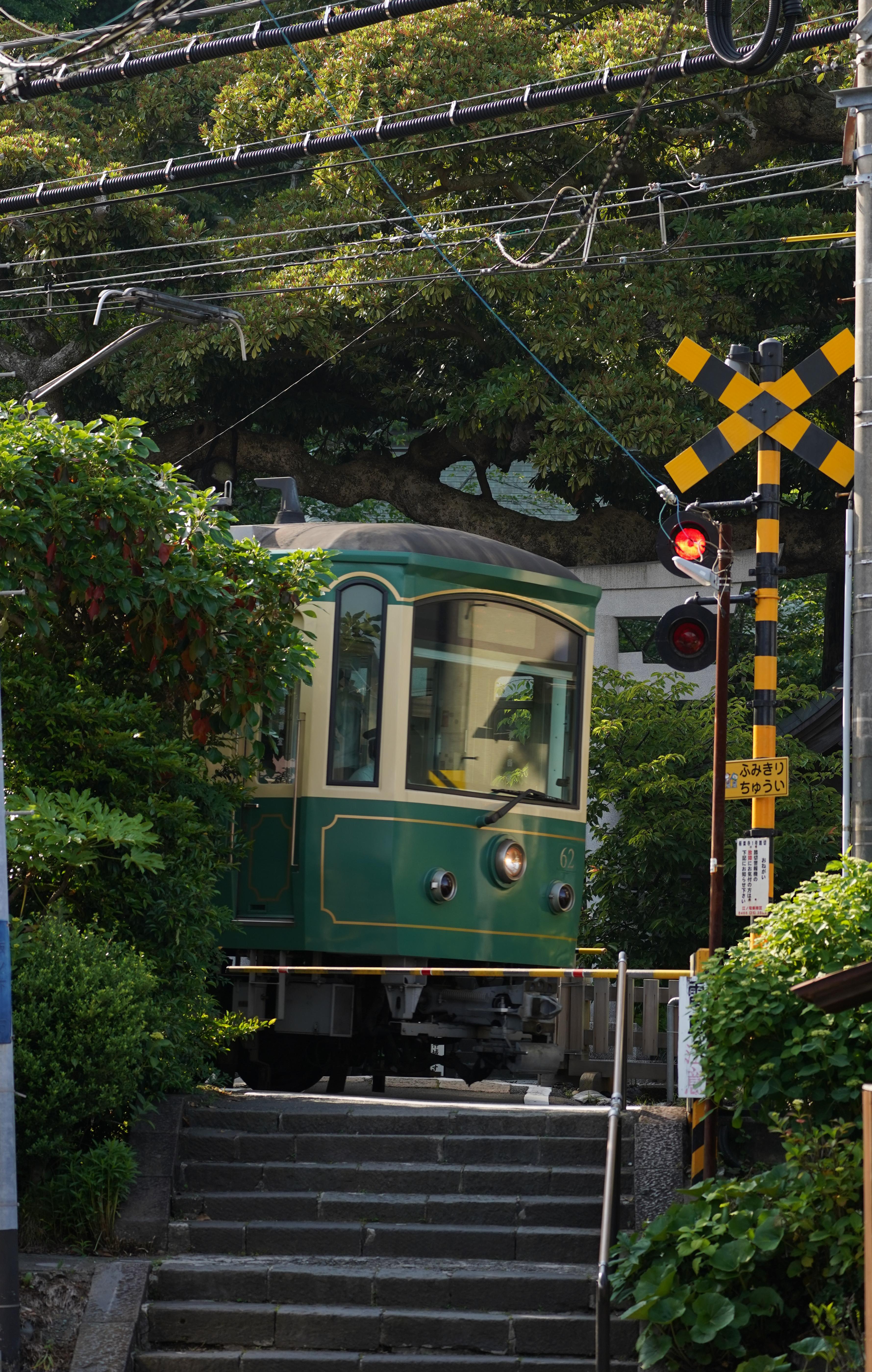 从镰仓站乘上古老的江之电,两节——有时是三节——深绿色铁皮车厢晃过狭窄街巷,看得清清楚楚两侧人家的窗,哐当哐当奏响当地人生活的节拍。在一家面包店的店主纪事上读到这么一段:“今年三月,江之电71年来首次修改了时间表,熟悉的时间安排被打乱。自出生以来,这份时间表就像是我生活的节奏…… 目前当地居民似乎还没打算记住新时间表。”我的生活中,有过不变的节奏吗?又有什么怀念的节奏吗?站在车尾,透过玻璃看绿草丛生的细轨道在脚下蜿蜒,偶尔有自行车骑过踏切。几站之后抵达长谷。