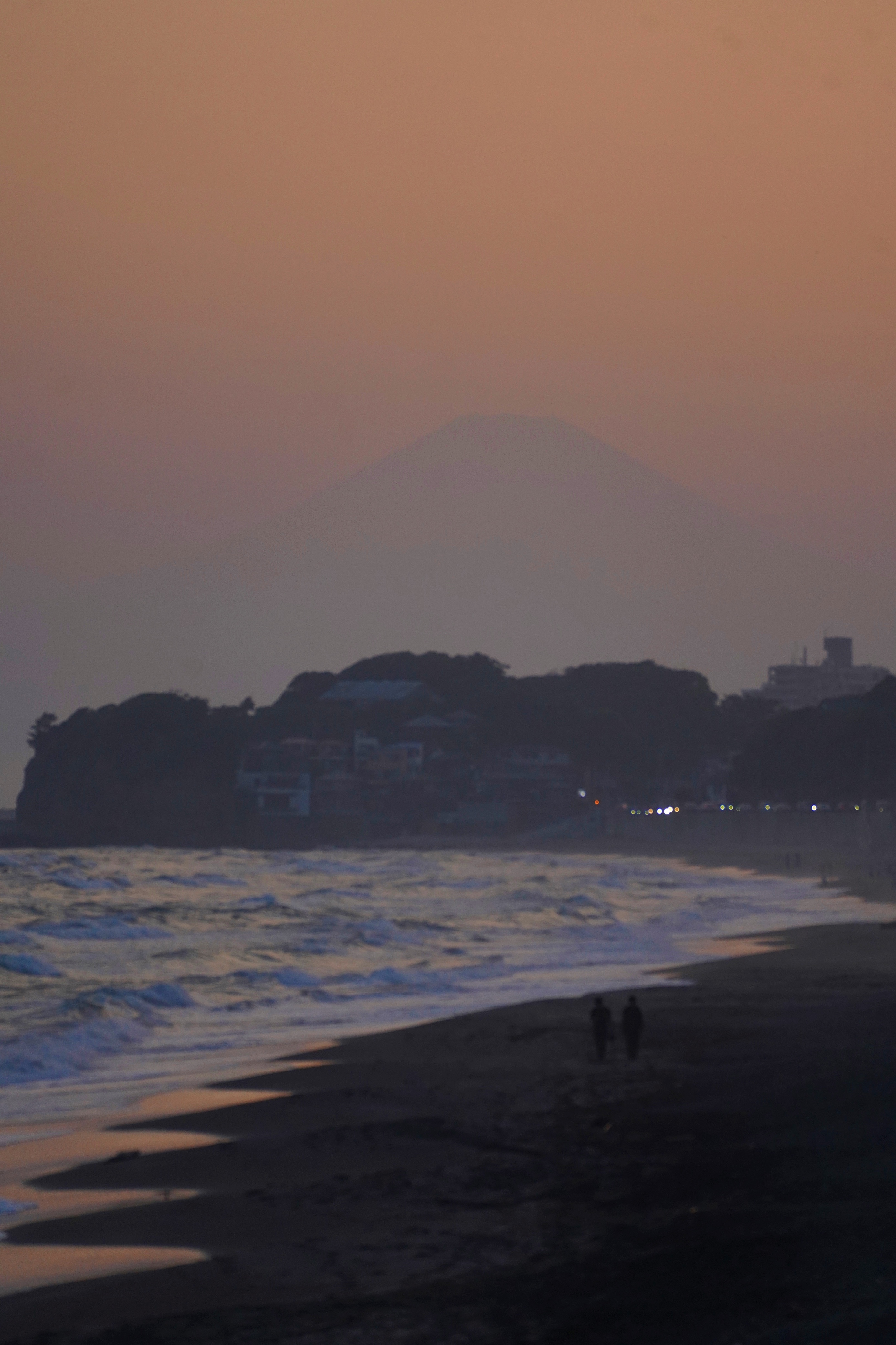放课后的少年走向海滩,身后的江之岛与铁道沐浴在朦胧金光中。古老的电车从金雾中驶来,路过我们的镜头,驶入沉寂的老街。两人又来到七里滨的海,寻找日暮的色彩和山的轮廓。它们如期而至。富士山如花火打上橘色天空,定格成一瞬的浮世绘。潮水涌来脚边泛起银白的浪,潮水退去脚下是红色的沙。牵手走过的恋人,十指是不是扣得更紧了一些。身后岸上亮起的街灯虚化成一片彩色光斑,像夜晚吹出的肥皂泡,闪烁着从十六岁到四十六岁的浪漫,在潮声中翻涌。好きだと叫びたい。人啊,无论长到什么年龄,还是会在一瞬心动。尽管很深的喜欢,越来越难说出口。