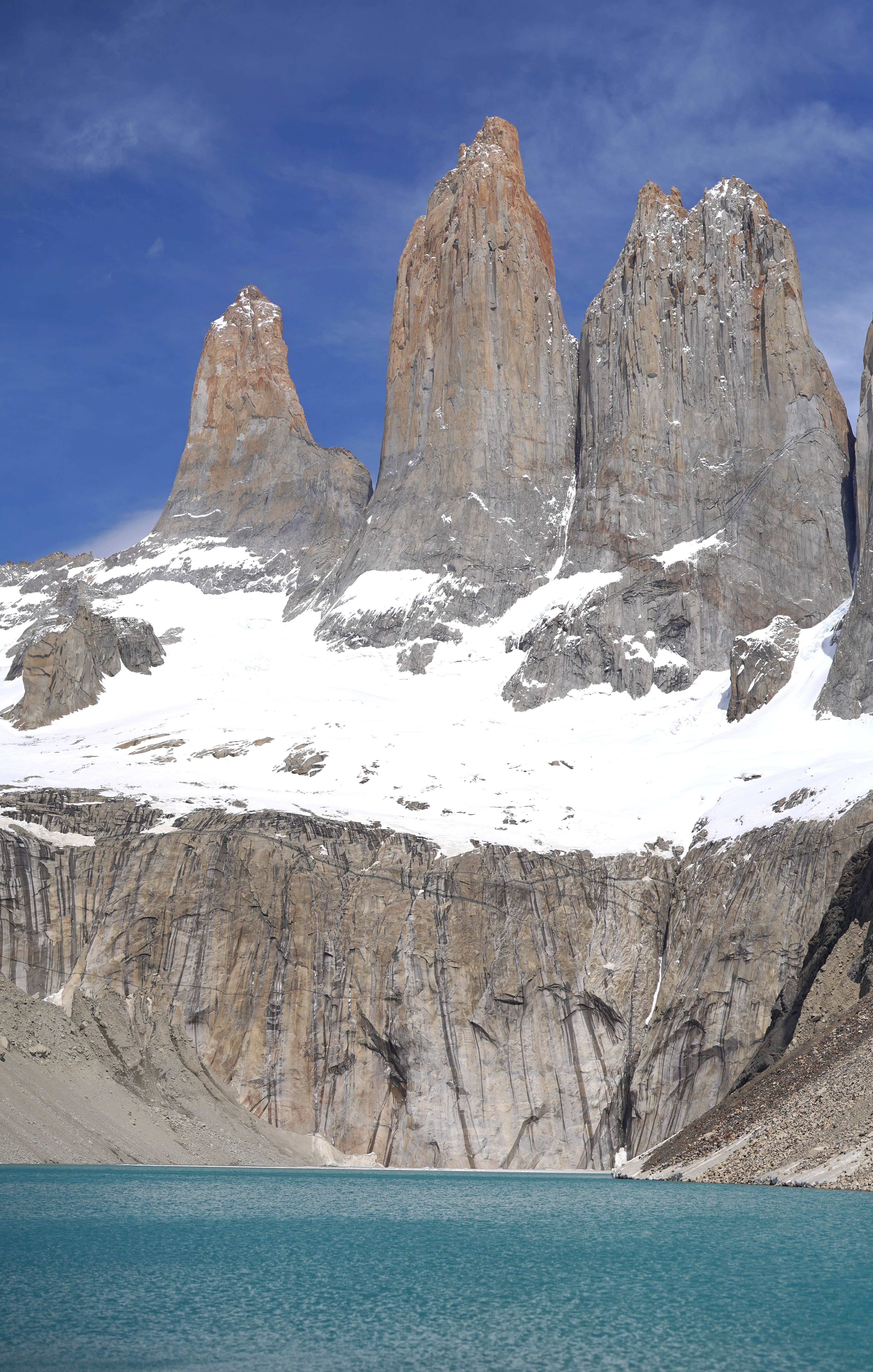 Torres del Paine, 当地Tehuelche语中蓝色的塔。塔自然是指这几座山峰,它们笔直、壮丽、突兀,无法忽视,如水晶原矿破土而出,是大地赤裸裸向天空伸出的手。至于蓝色,不知是指花岗岩山峰及冰川反射的天光,还是山脚下碧波荡漾的湖泊。游客大多是为这几座巨塔而来。体力好的背包客会花几天时间走完围绕山峰的环线,我们这种闲散观光客则住在眺望山峰的房间,每天坐车去山下某条trail的起点。车轮有时要驶过湍急的河流,向导问你们会游泳吧,又说万一遇到危险我会打开车窗你们赶紧往车顶爬。黄色河水扑成白浪盖过挡风玻璃又褪去,窗上洗出轮廓愈加锐利分明的百内山脉。