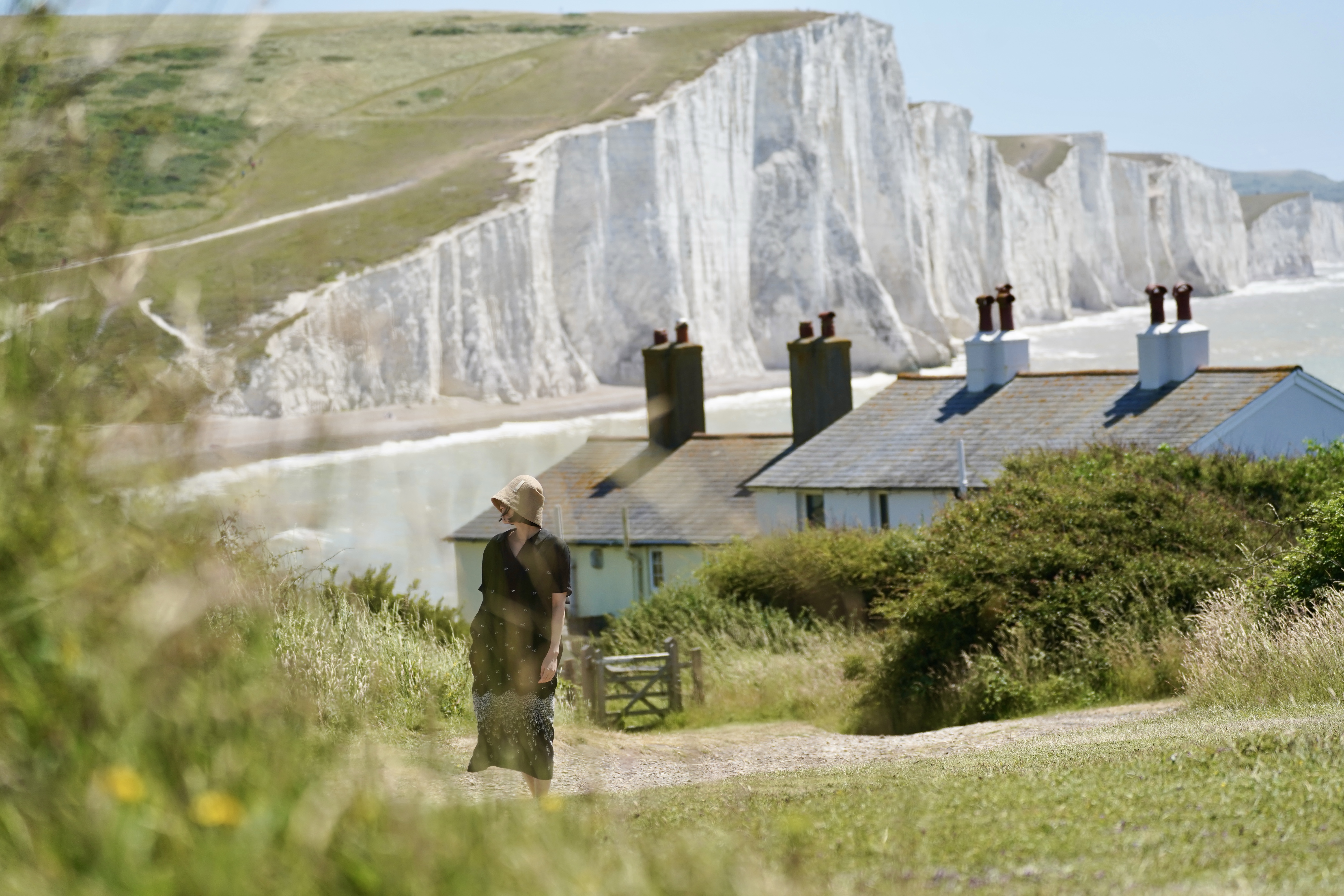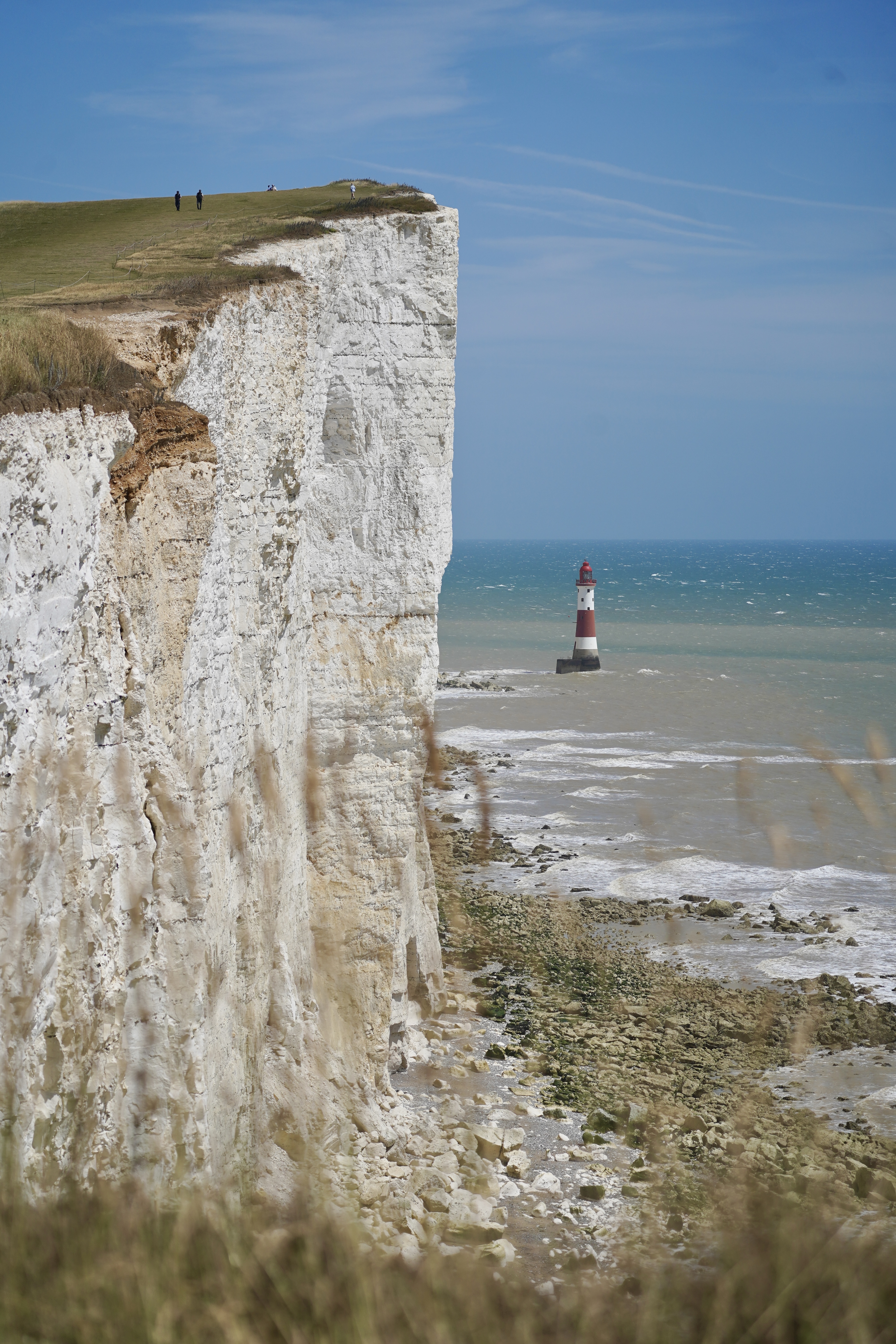 第一眼见到伦敦时,我嫌它太新太乱,都铎式建筑、维多利亚式建筑与摩天大楼毗邻,不像奥斯曼改造的巴黎具有整体性。后来慢慢发现它的老在骨子里,与欧陆国家相比政治上更保守,文化上更怀旧。毕竟它四十万年前开始与大陆分离,并在数千年前真正成为一座岛屿。地理上分裂的痕迹如今清晰可见。从维多利亚车站乘Gatwick Express到南部海滨小城Brighton,再驱车一小时来到Seven Sisters。沿步道穿过开阔的草坡,层层红色高草拂过裙角,不久长长的白崖便浮现在眼前。上亿年前海中沉积而成的石灰岩,千万年间缓慢从海底升起,数十万年前在洪水冲击下驶离大陆;它耀眼的白帆在风中扬起优美起伏的褶皱,呼应脚下波涛的线条。几座红瓦顶高烟囱的白房子落在草坡尽头,背后海滩上白色悬崖向无尽的远方绵延。这一幕是银河系搭车客的新地球预览,是魁地奇大赛的舞台,是Atonement没能实现的结尾;是无数个英伦故事的开头或结局或过渡。或许因为这里温润又野蛮,西南风送来大西洋的呼啸或絮语,能够配合所有在岛屿上发生的情绪。下午赶到几公里外的Beachy Head时,狂风渐起,在山坡上的绿草绒毯掀起漩涡,与空中的云朵一同翻涌。但悬崖不知畏惧,草坡陡直向天空攀升;百多米高的白色峭壁下方,一座红白相间的圆柱灯塔缀在海面,划出灰色浅滩与碧色深海之间的界限。一只棕色卷毛小狗跑下山坡,隐入汹涌起伏的绿涛。绿波之上乘着野花与金光,绿波之下或许藏着别的小狗、野兔或绵羊。可惜妖风让人无心漫步与寻觅,一路跌跌撞撞滚下山坡,回到车中才找回完整的、不被吹断的呼吸。