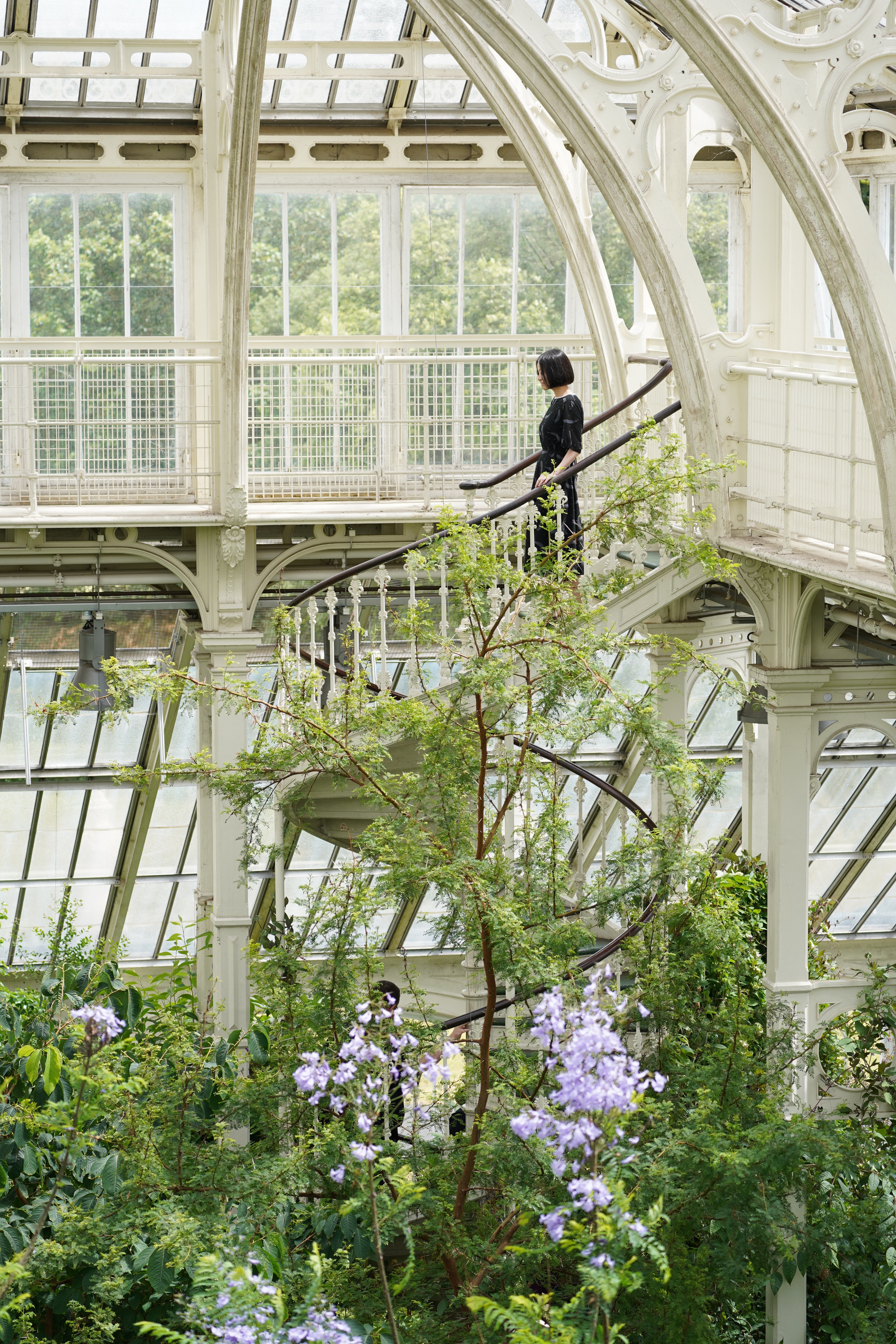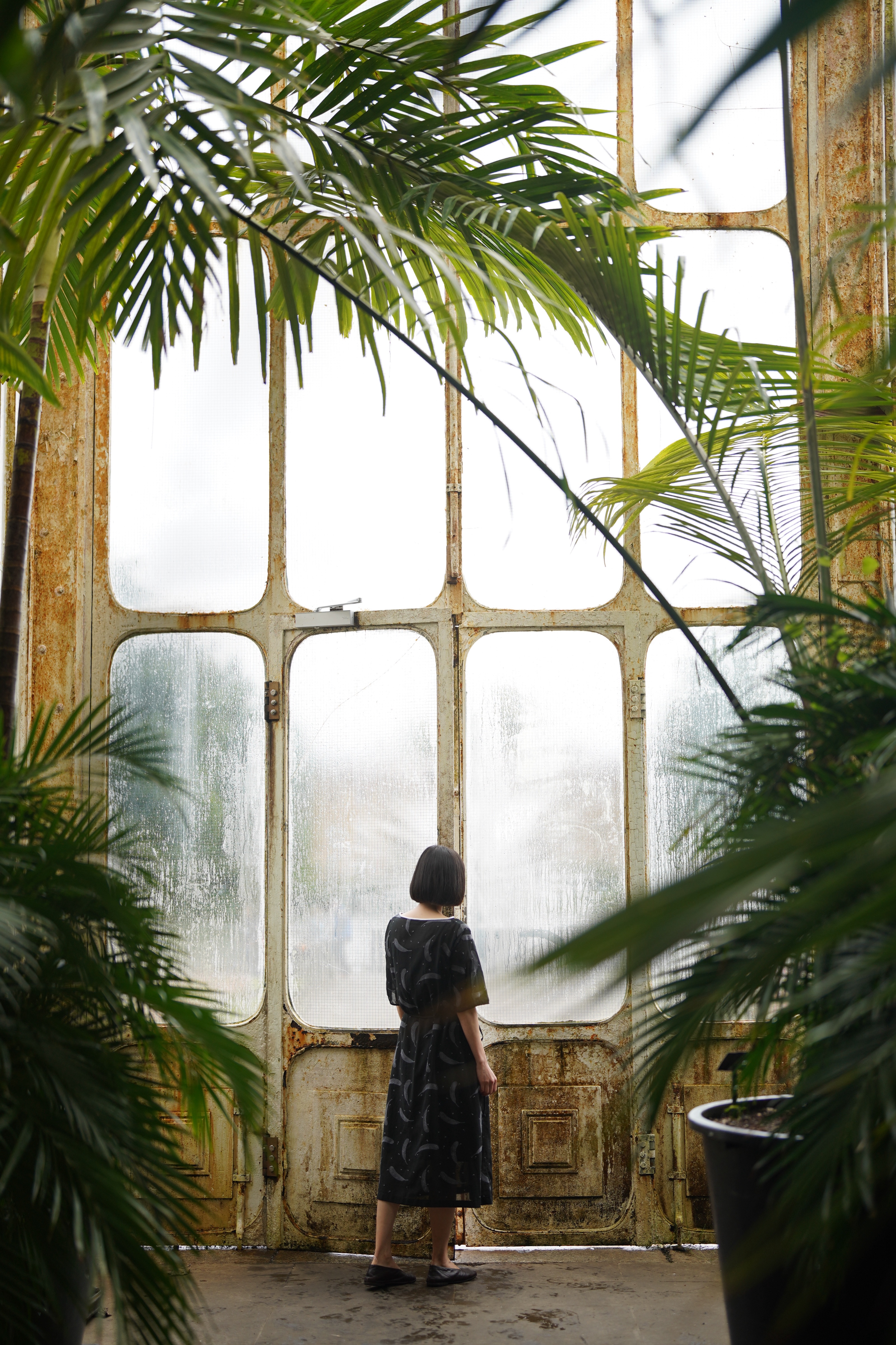 另一处古老的自然位于城郊。Kew gardens历史可追溯至十八世纪,几座晶莹剔透的宫殿散落在泰晤士河畔的辽阔绿地。维多利亚时代的玻璃与钢搭成弧形屋顶的Palm House。推开沉甸甸的白色铁门,温暖潮湿的空气扑面而来,茂盛的棕榈树伸出巨大浓绿的绿叶,带着雨林的呼吸将我们拥裹。回过头看重重树影间的铁门框,原来已锈迹斑斑,微微泛着黄,大块玻璃上凝结着几个世纪的雾气——我们方才推开的是通往热带旧时庄园的一扇门。沿白色雕花栏杆的旋转楼梯盘旋向上,来到温室二层,棕榈树、可可树、橡胶树等高大树木的枝叶轻抚肩头,低头是一片浓翠欲滴的海。我们像变成两只鸟,落在世上无人知晓的赤道岛屿。又像落入装着一片雨林的玻璃球,拧动某一处钢发条,森林便会转动,世界叮咚作响。在Waterlily House则步入油画中。巨大的王莲翠叶浮在质地浓稠的镜面,幽蓝、鹅黄、淡紫色花朵或亭亭玉立,或借水波半掩面。池畔野花细叶翩跹,玻璃墙映出屋外浓绿。玻璃顶篷缝隙漏下雨滴,一滴一滴打在身上。人仿若浸在米莱笔下<奥菲莉亚>落水的河流,浮于浓绿水草间,随水波荡漾,抬手触到水中隐秘绽放的睡莲;或许就此沉入水底,或许会被王莲的叶托起。Temperate House曾是世界上最大的一座温室,或者说世界上最小的一片温带森林。温和的空气中蓝楹花在半空绽放,绿藤叶沿白色管道攀向高得看不见的玻璃天空,巨人国的魔法蕨类植物向空中伸展美丽的羽叶与小提琴头状的芽。沿旋转楼梯爬到半空中,像一粒种子在浩瀚的树冠间飘荡。它们也曾是一粒沉睡的种子,一株殖民者的战利品,在外星球孤独又茁壮地生长,不知故土的变迁,不知同伴的消亡,长成如此广阔、明净、被圈养却拥有无限生命力的森林。