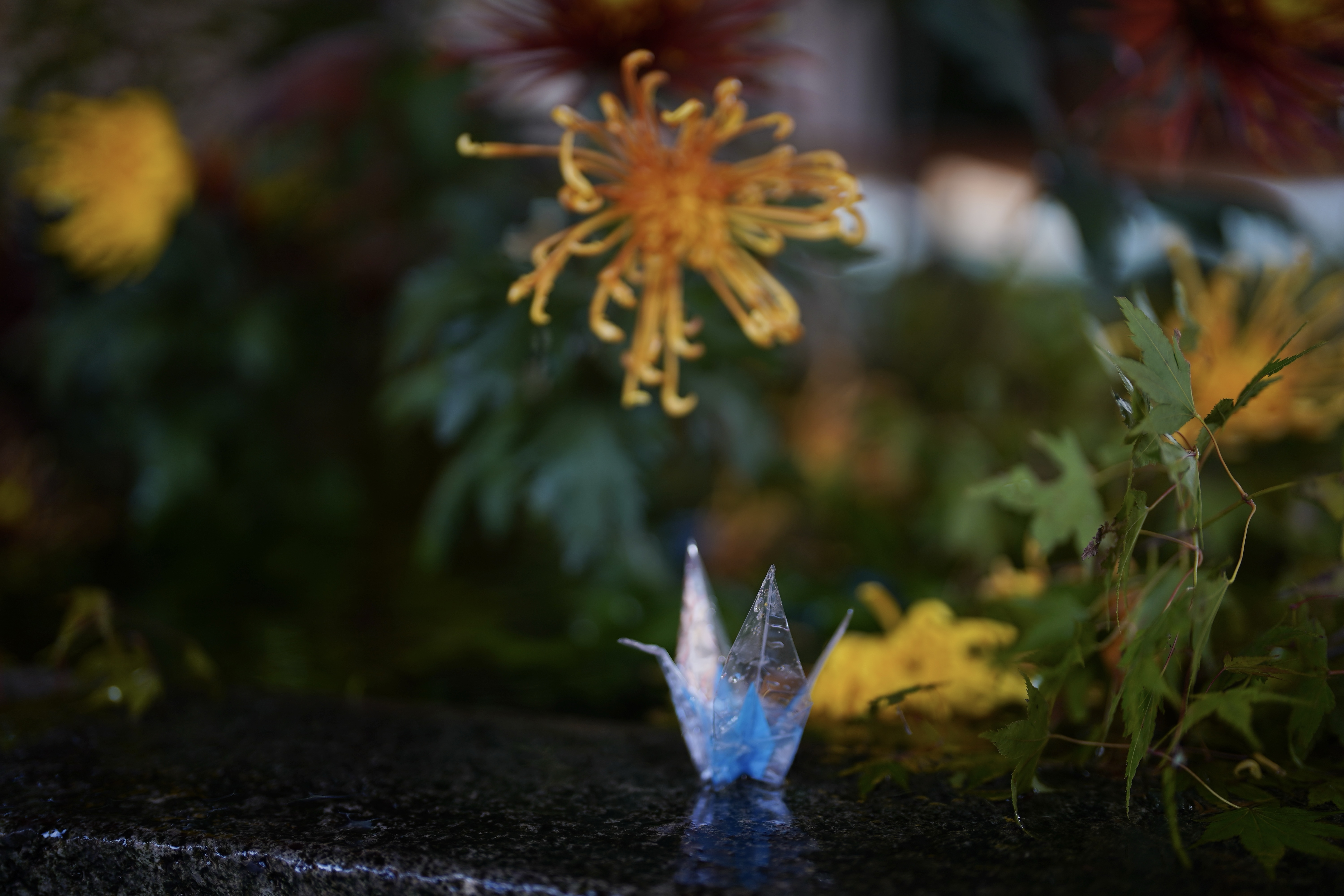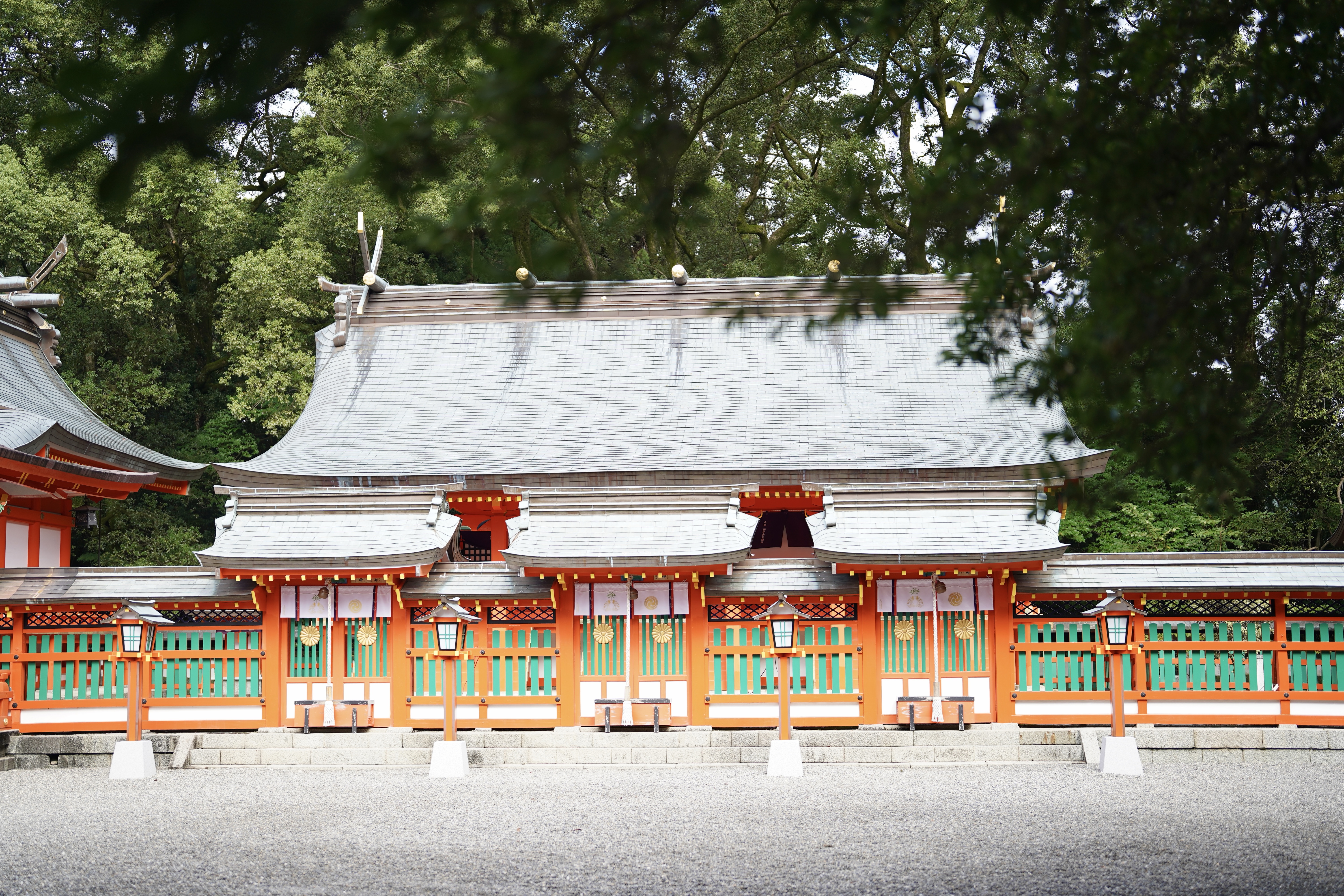 翌日从仙岛回到人间,在告别和歌山县之前拜访了熊野三山中的最后一座——熊野速玉大社,也称新宫。千余年历史的新宫座落在城市内,短短参道尽头,一座手水池中插满枫枝与菊花——如同和服纹样稍稍提前于季节,水上浮着蓝色玻璃纸纸鹤。穿过挂粗稻草绳结的红色社门,几座歇山顶朱漆本殿一字排开,像是本宫大社的上色版,红梁柱、绿木栏、白墙面在晨光中闪闪发亮,背后树影郁郁葱葱。早晨参拜者尚未到来,白衣红袴的巫女匆匆步入内殿,身披白衣的神官紧跟着入内,敲响一面大鼓,咚咚鼓声回荡在无人的神殿前。参道旁立着一颗枝繁叶茂的参天神木,粗壮树干上系着一圈注连绳,相传为平重盛手植。1159年平清盛、重盛父子熊野参拜途中,京都爆发平治之乱,返京之前重盛向熊野神明祈求武运,大胜源氏之后他前来栽下这棵竹柏树。平氏就此攀上巅峰,独揽朝政,极尽荣华。整二十年后,平重盛再度前往熊野参拜,向神明祈求阻止父亲暴行,并愿用自身寿命换取天下之安宁与后代之长久。还京后他一病不起,拒绝治疗,同年离世。可惜平家后代与天下和平亦没能长久,只有古寺钟声继续敲响诸行无常。所有的故事早已写好结局,知晓这一切的我们要如何生活?心怀祈望,拥紧此刻。「最終回のストーリーは初めから決まっていたとしても、今だけはここにある。」